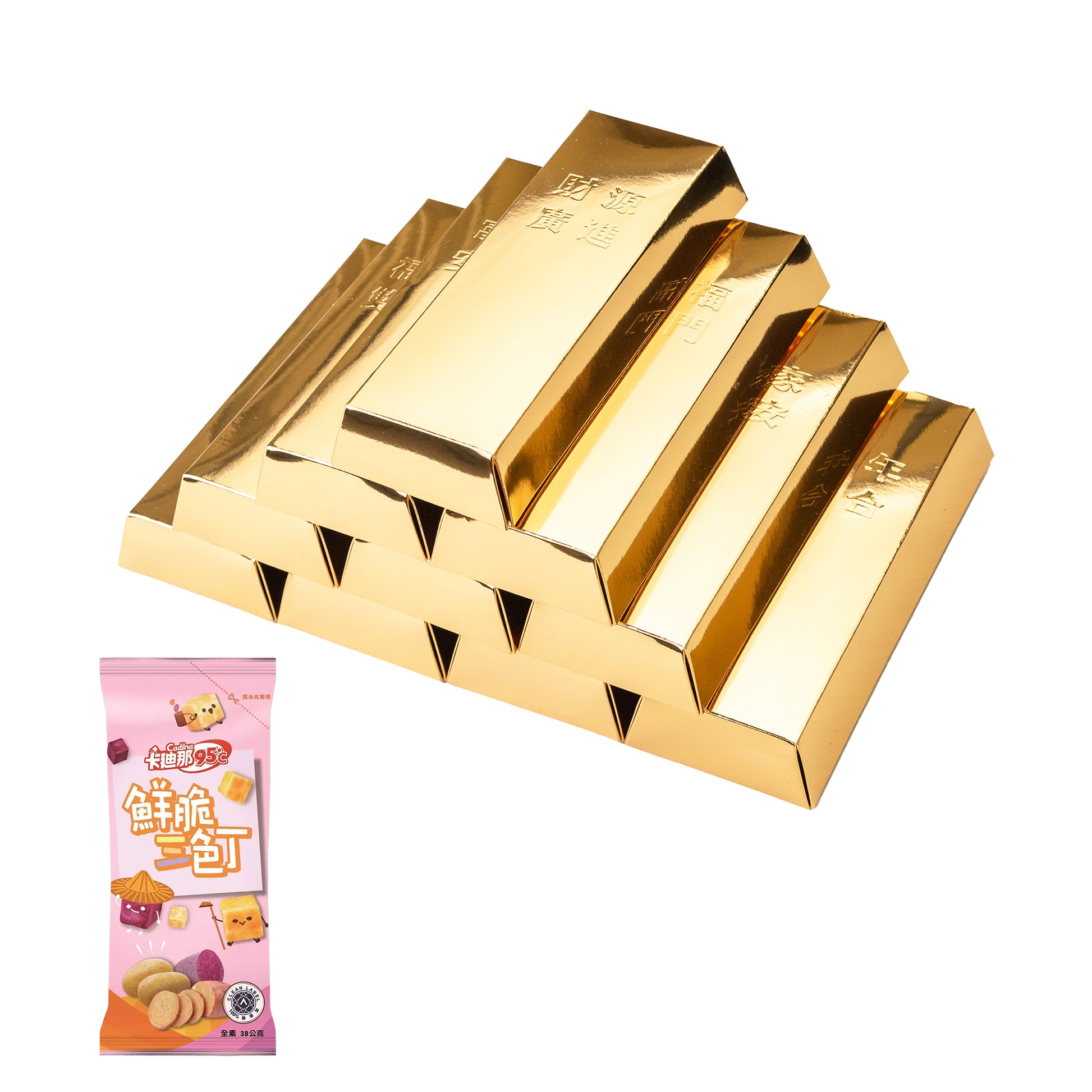 把爽脆三色丁裝進閃亮小金條,一打開就有儀式感。推薦想要小巧但有面子的企業主、婚禮新人與小資族;送主管、同事、親友與客戶皆宜。適合年節走春、開工賀喜、尾牙春酒、成交謝禮與拜訪寒暄。體面不佔包袱,輕鬆致意。