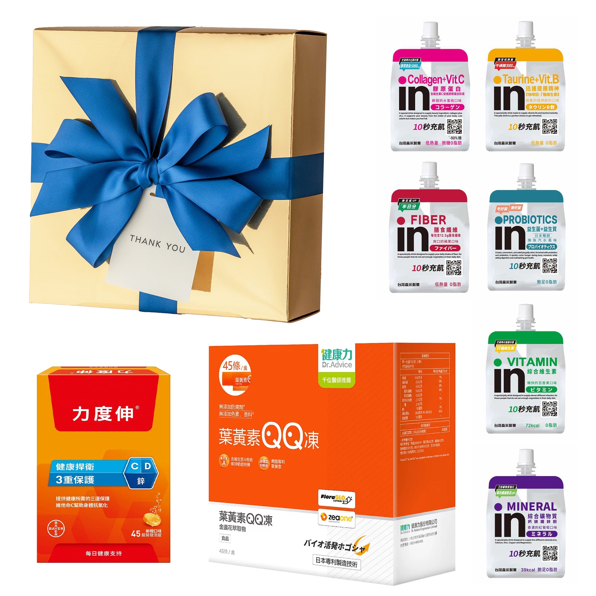 這是一份專為「重度用眼族」設計的豪華應援包!核心主打健康力葉黃素QQ凍,六大晶鑽配方強力守護過勞的靈魂之窗;搭配力度伸發泡錠與森永in果凍,不論是久坐冷氣房需要維他命C增強防護,還是趕工沒空吃飯需要十秒快速充能,這盒通通有。