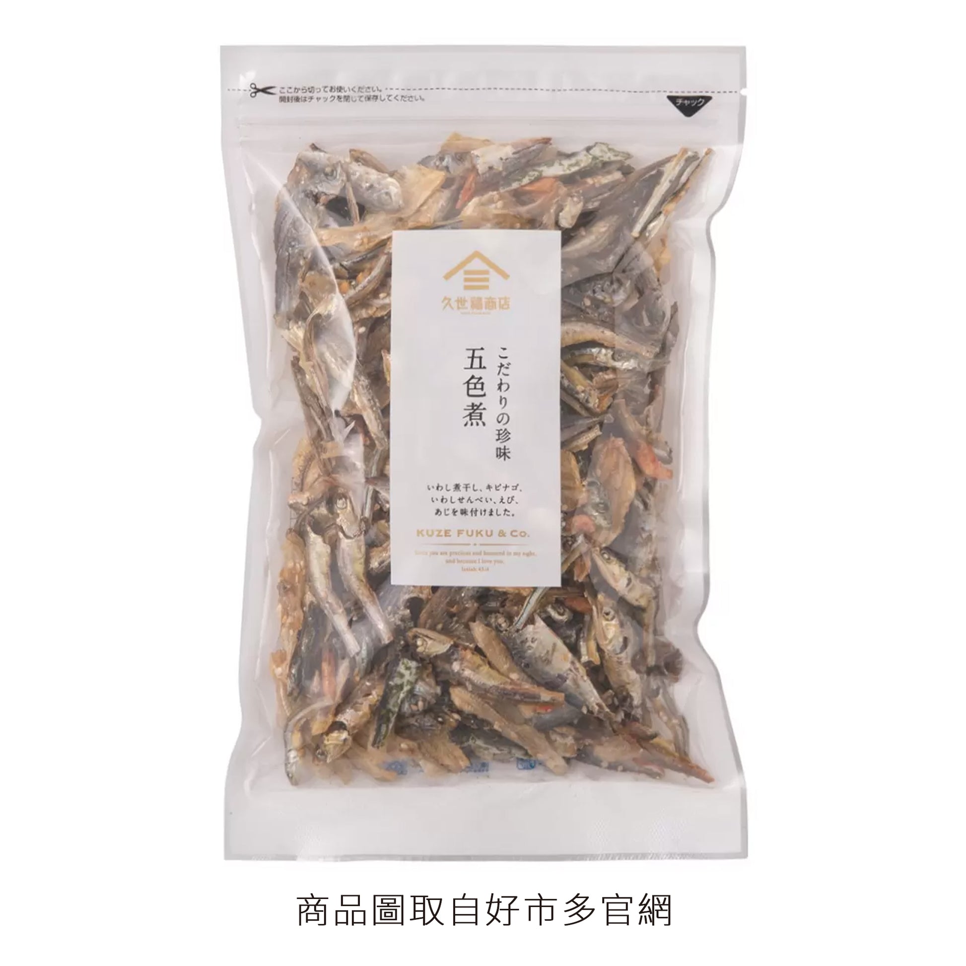 - 成分:沙丁魚、砂糖、丁香魚、蝦、竹筴魚、醬油(鹽、脫脂大豆、小麥、砂糖、大豆、米、酒精)、發酵調味料[糯米,米麴菌(米,米麴菌),酒精,葡萄糖,鹽]、芝麻、調味劑(L-麩酸鈉、5’-次黃嘌呤核苷磷酸二鈉、5’-鳥嘌呤核苷磷酸二鈉)、石蓴、辣椒。