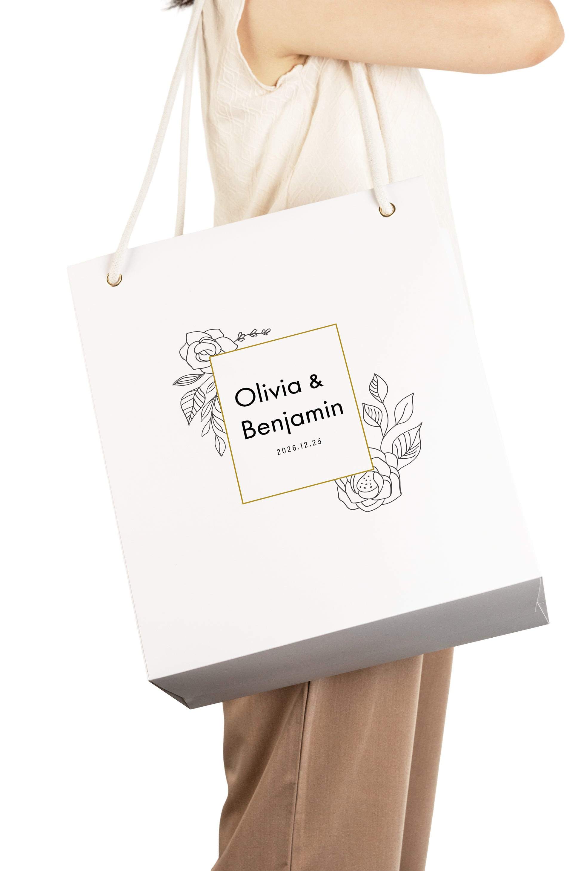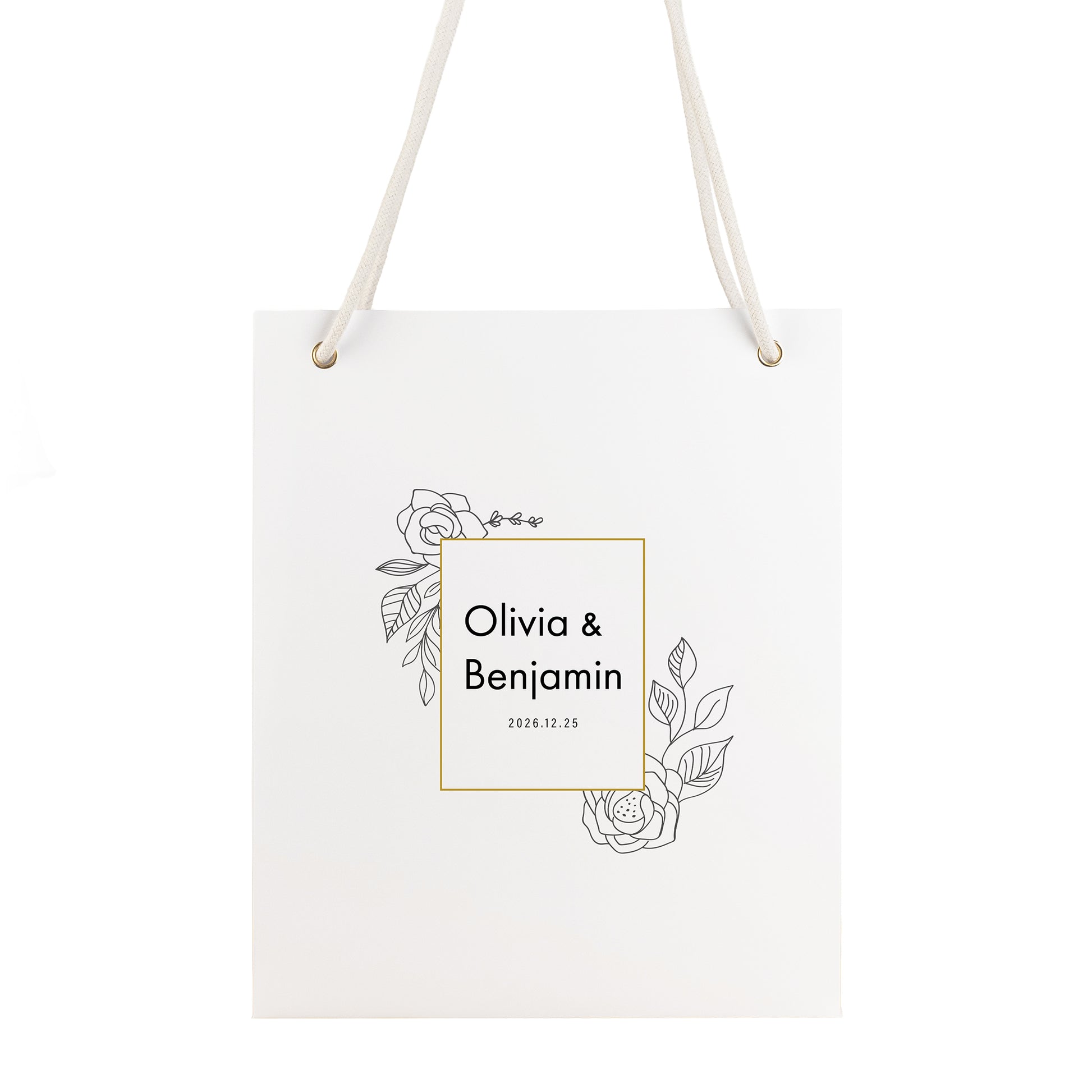 設計給送禮物給新人時使用,客製新人的名字和婚期,袋子耐磨適合日用,就像婚後生活耐磨愛相隨。